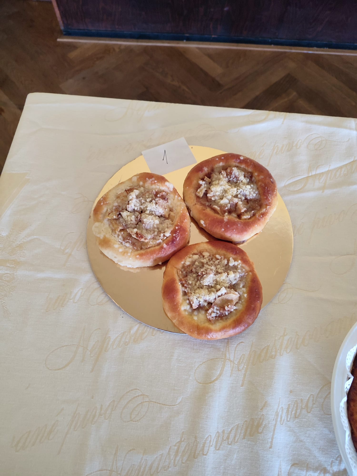 V sobotu 12.10.2024 se konala soutěž o nejlepší posvícenský koláč. Přihlásilo se celkem 16 soutěžících ( z toho 8 dětí). Komise to neměla jednoduché, nakonec vyhodnotila 3 nejlepší koláče. Na 1 místě se umístila paní Lenka Blatská, která obdržela odměnu -poukaz ve výši 1500Kč, na 2 místě se umístila slečna Verunka Vokrojová, která obdržela odměnu -poukaz ve výši 800Kč a na 3 místě se umístila paní Kateřina Mocová, která obdržela odměnu-poukaz ve výši 500Kč. Všichni soutěžící, kteří se neumístili obdrželi cenu útěchy.. Všem soutěžícím děkujeme za účast.